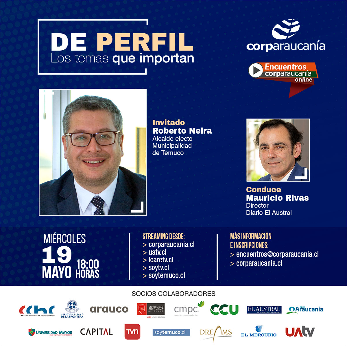 La cita es mañana miércoles 19 de mayo, a las 18:00 horas, desde Corparaucania.cl, Soytv.cl, Soytemuco.cl, Icare.cl y Uatv.cl.