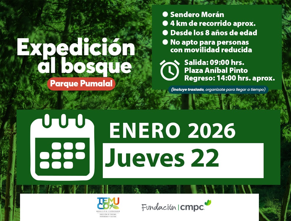 Esta actividad INCLUYE TRASLADO, el punto de encuentro es a las 09:00 horas en la plaza Aníbal Pinto, para el traslado al Parque Pumalal y comenzar la caminata. El regreso es a las 14:00 horas aproximadamente.