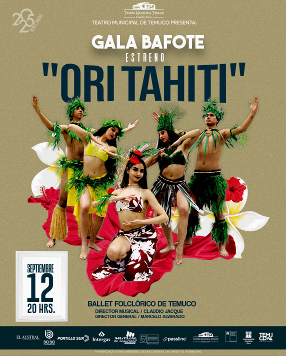 El Ballet Folclórico de Temuco (BAFOTE) estrenará «Ori Tahiti», una danza tradicional polinésica que transforma el cuerpo en lenguaje para narrar historias y conectar con la naturaleza y la memoria ancestral. Este arte incluye ritmos como el enérgico Ōte’a, la sutileza del ‘Aparima y el festivo Tamure, que reflejan la fuerza y vitalidad cultural del pueblo tahitiano.