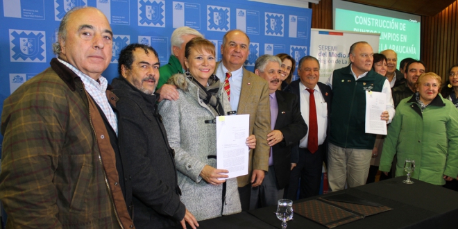 En un hito trascendental para la implementación en La Araucanía de soluciones medioambientales concretas, se convirtió el acto de firma de los mensajes con los proyectos de “Construcción de Puntos Limpios” y “Transferencia para el Programa de Recambio de Calefactores”, por parte del Intendente Luis Mayol, quién fue acompañado por la Ministra de Medio Ambiente, Marcela Cubillos; la Presidenta del Core, Jacqueline Romero; alcaldes de comunas beneficiadas, autoridades de gobierno y dirigentes sociales.