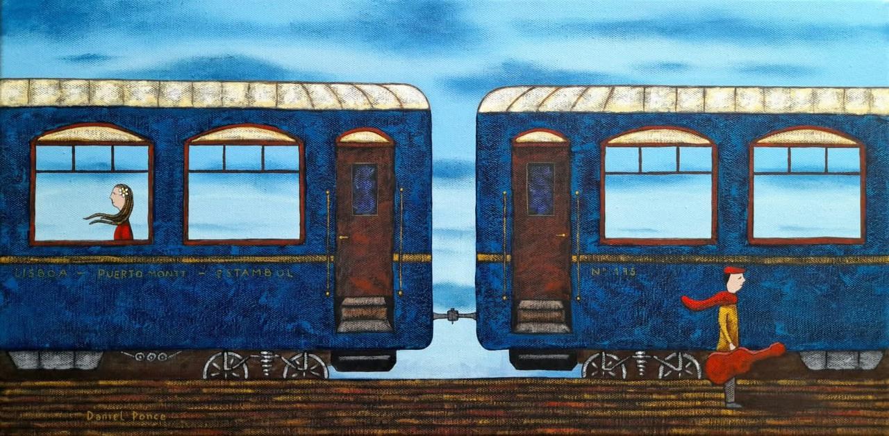 Entre los artistas participantes, María Eugenia Peldoza presentará “Estaciones de la vida”, una obra en acrílico sobre tela que nace de recuerdos personales. “La invitación me llevó de vuelta a mis viajes en tren: los trayectos familiares entre Los Ángeles, Santa Cruz y San Fernando, y aquellas vacaciones rumbo a Pichilemu en carros de madera. Son imágenes que permanecen intactas, como si el tren hubiera guardado para mí una parte de la infancia”, comenta. Su obra, dice, es una forma de agradecerle al tren esas memorias que aún la acompañan.